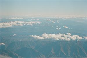 clouds, bird's eye view, airplane photos, film photo, analog image, 35mm, blue, mountain range